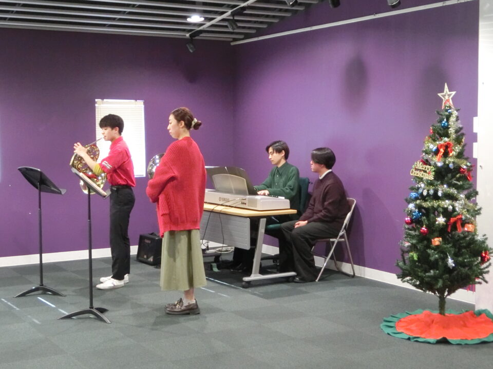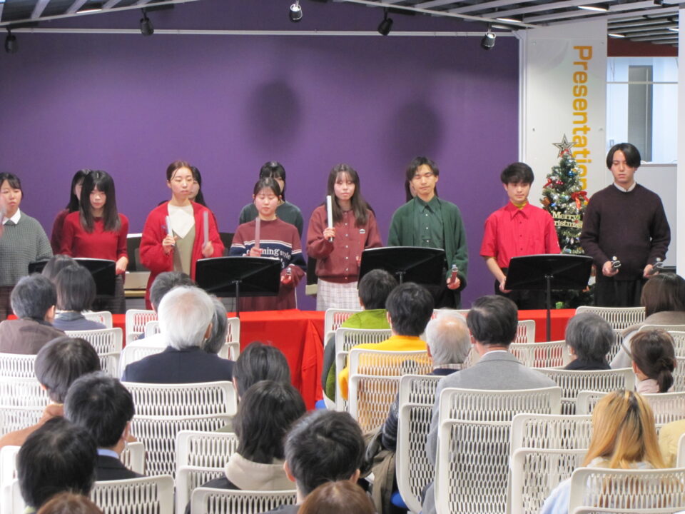 令和7年12月17日(水)、甲府キャンパスの附属図書館本館において、教育学部学生による歌唱&トーンチャイム及び管楽器・木管楽器での「クリスマスコンサート」と題したミニコンサートを開催しました。