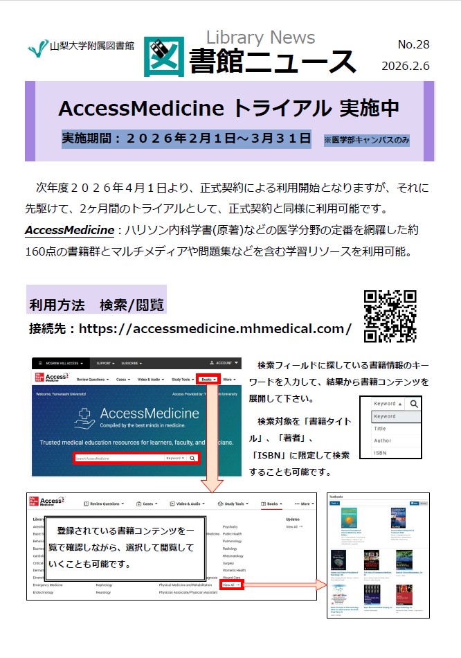 図書館ニュースNo.28「AccessMedicineのトライアル実施」を発行しました
