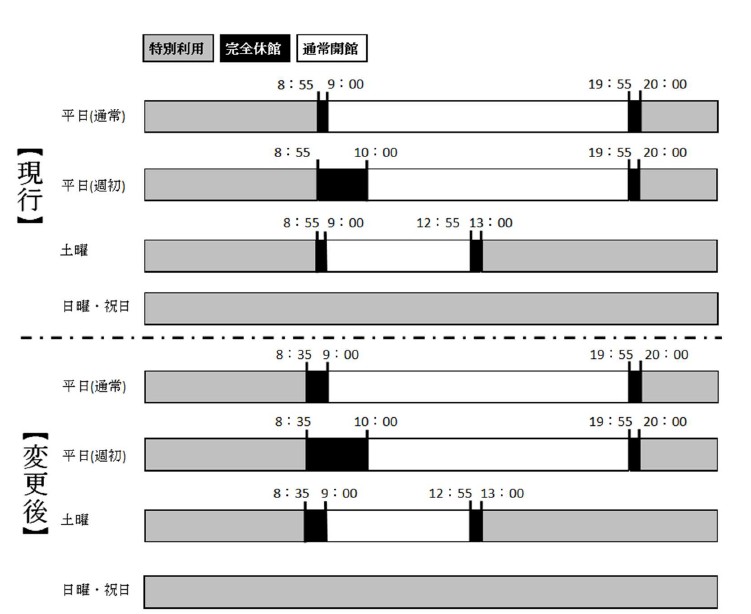 特別利用から通常開館に移行する際の、完全休館時間を以下の通り変更します。